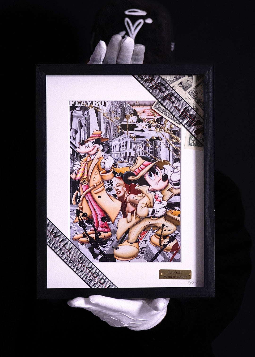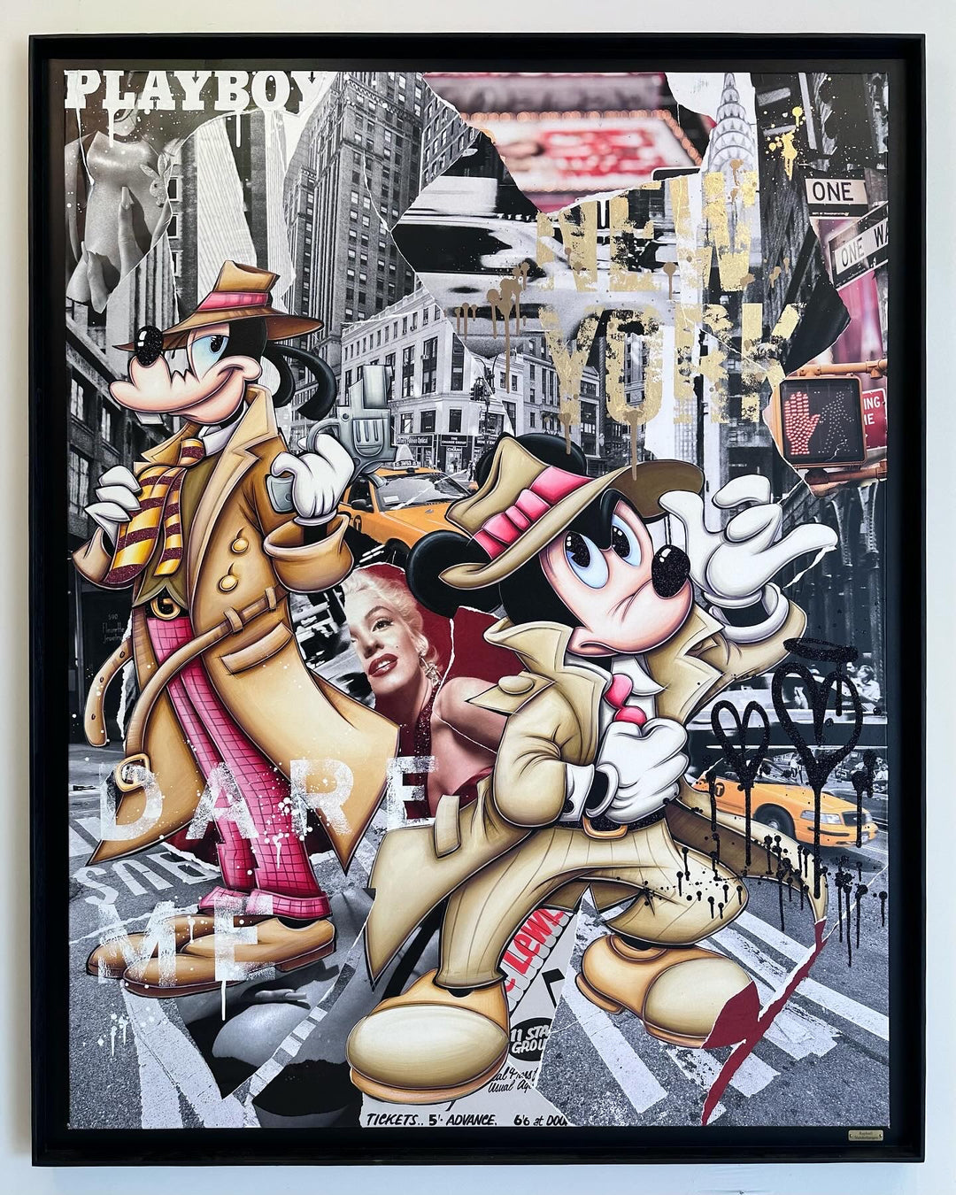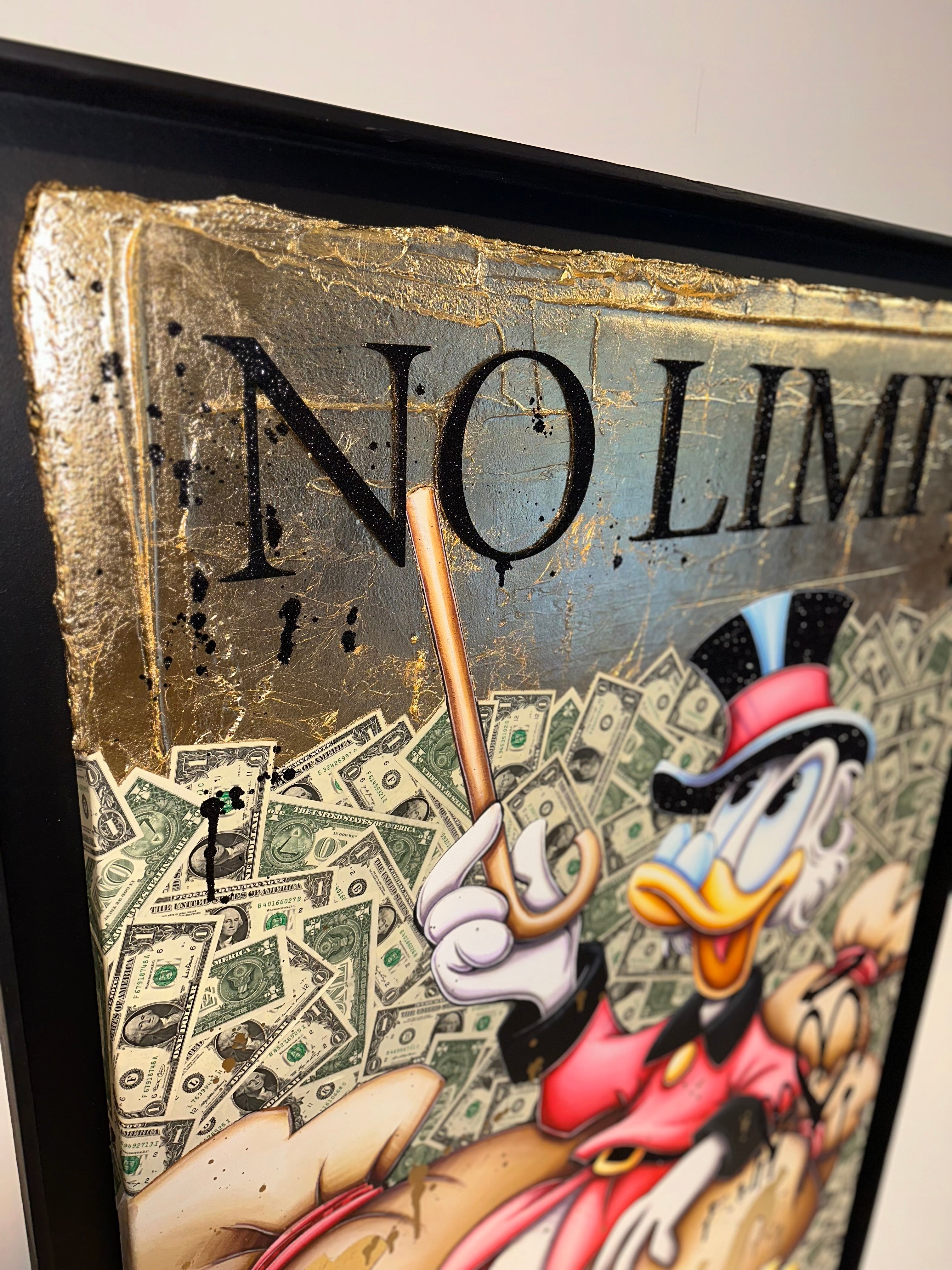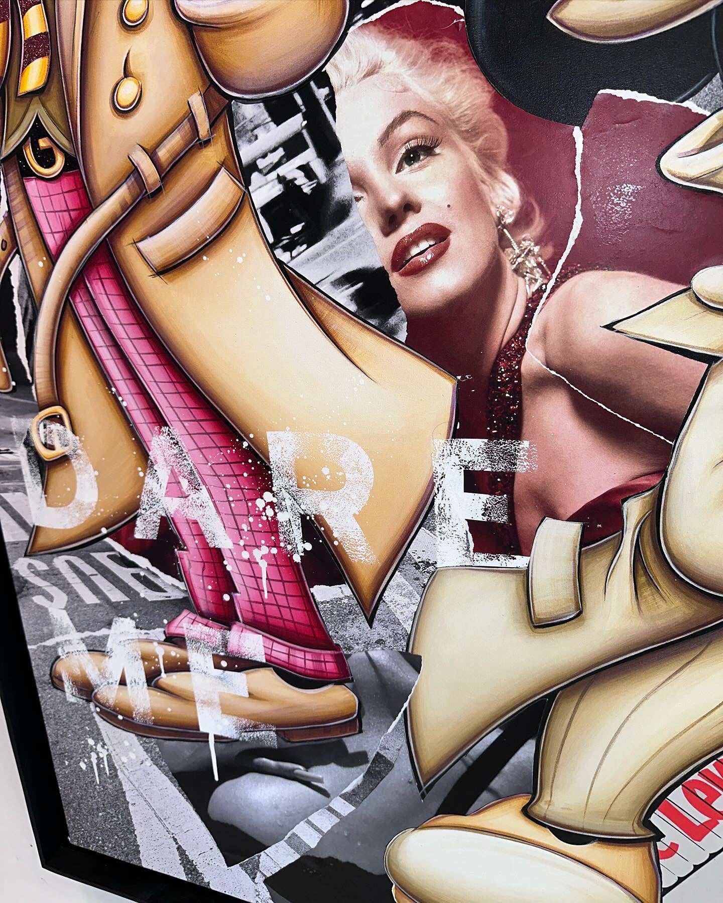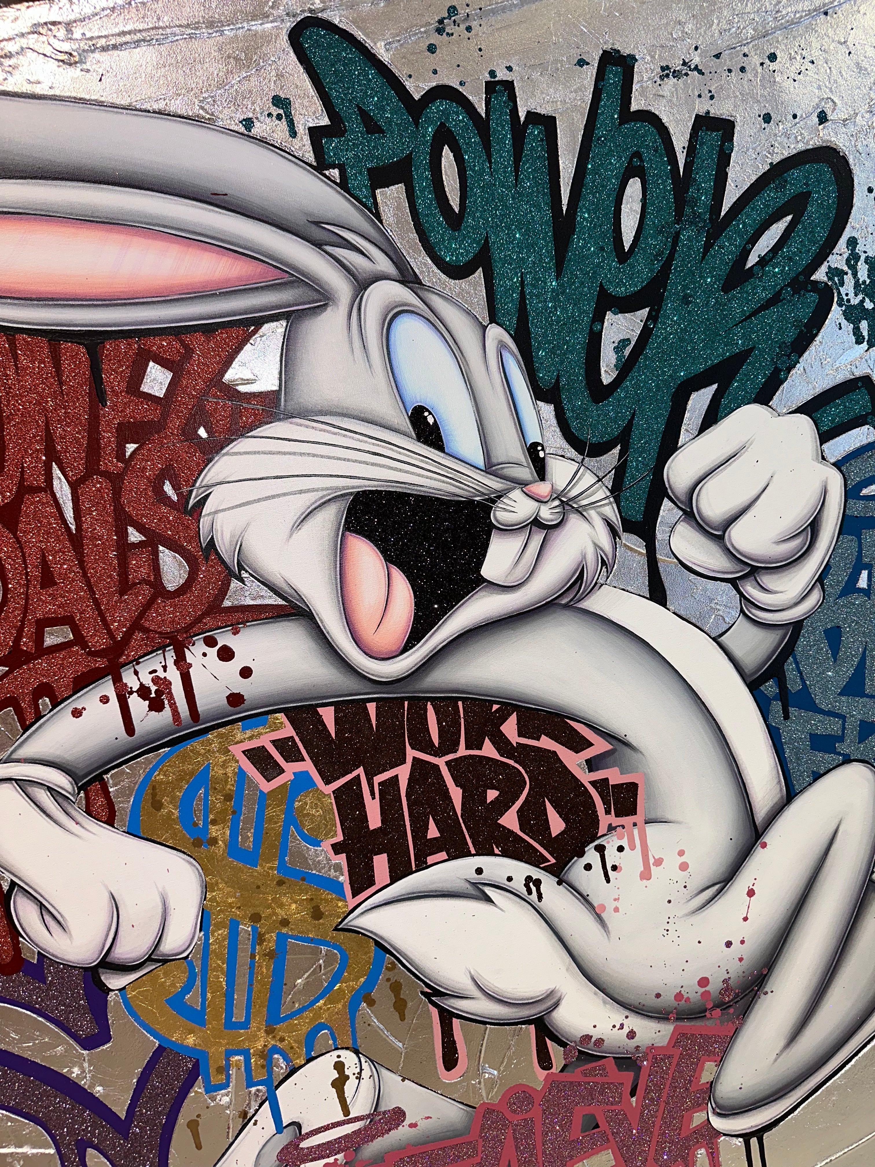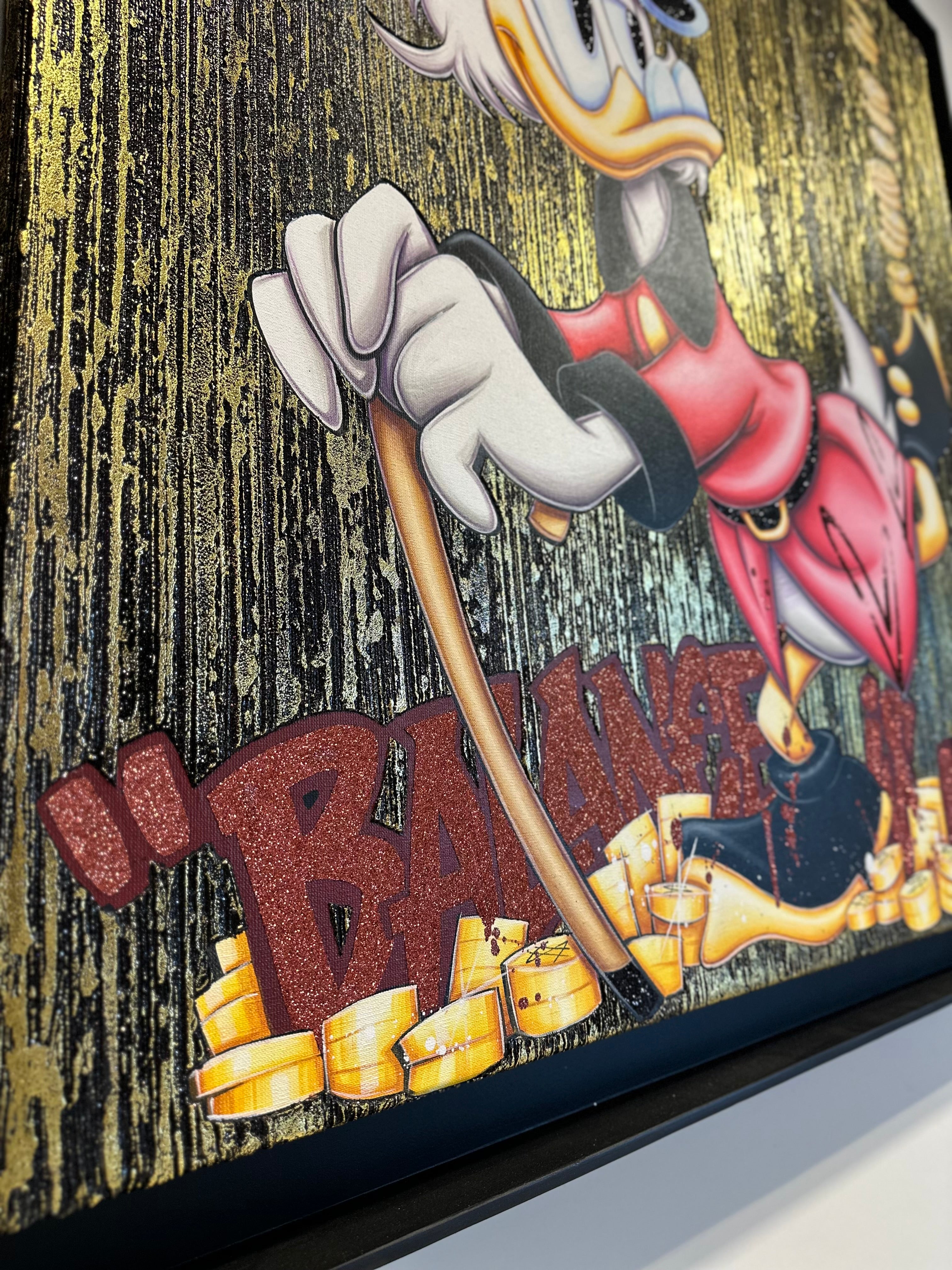 A common thread running through his paintings are the subjects of money and love, often illustrated by popular cartoon characters.