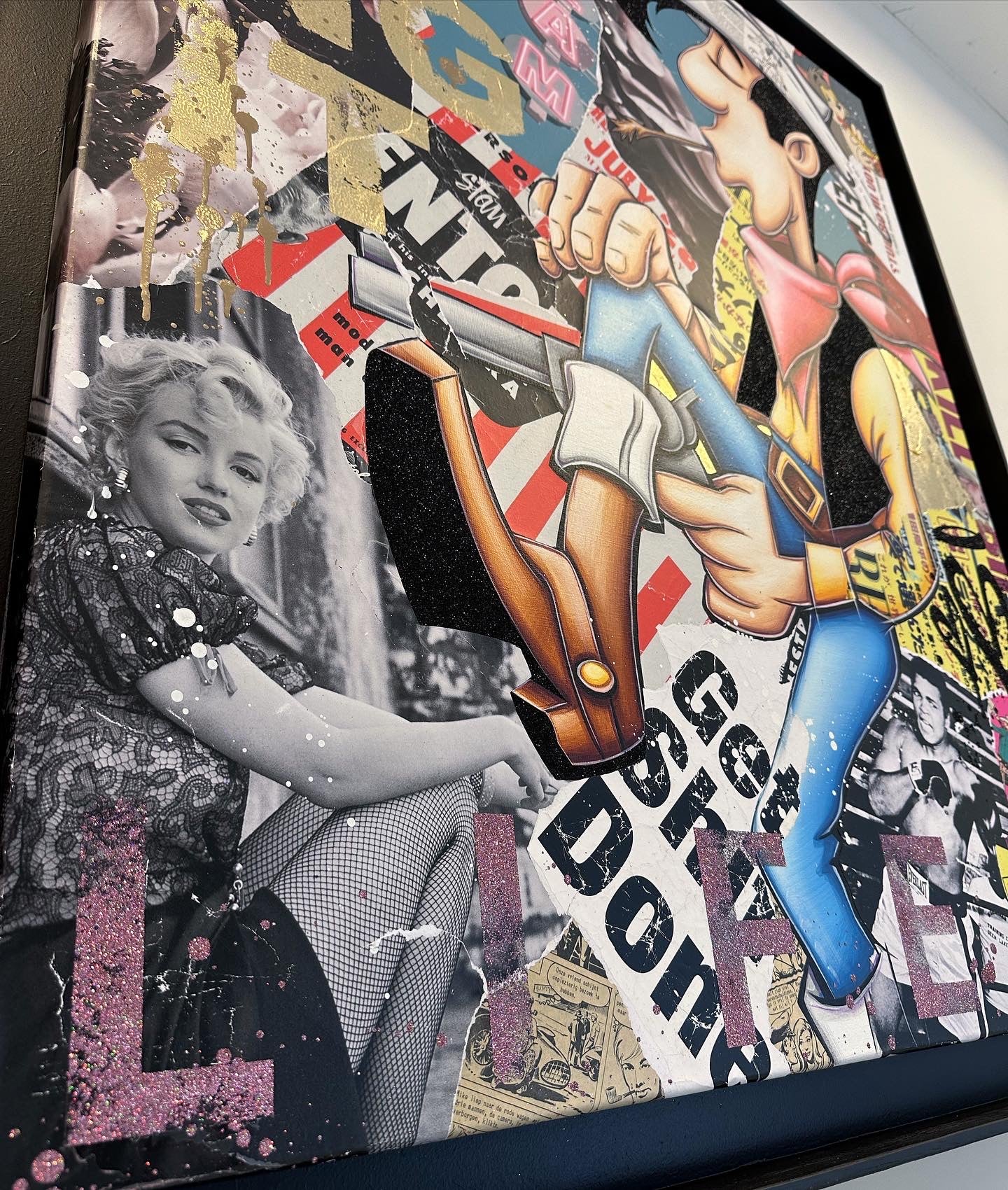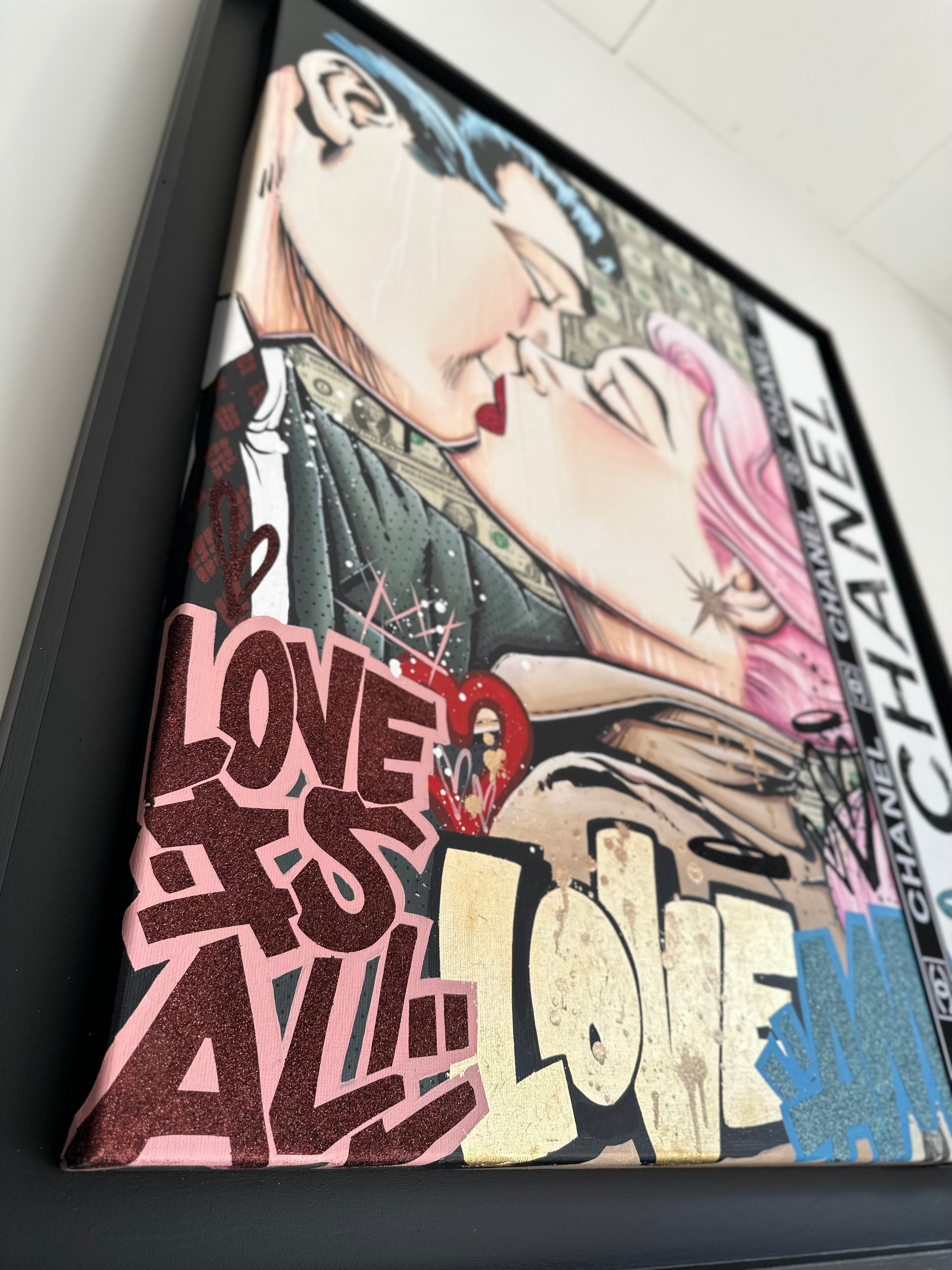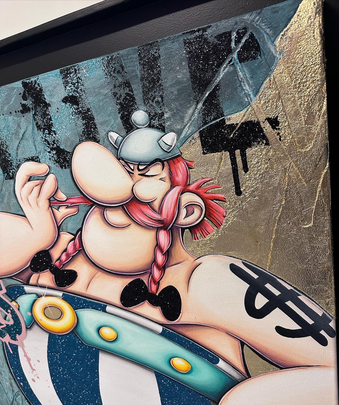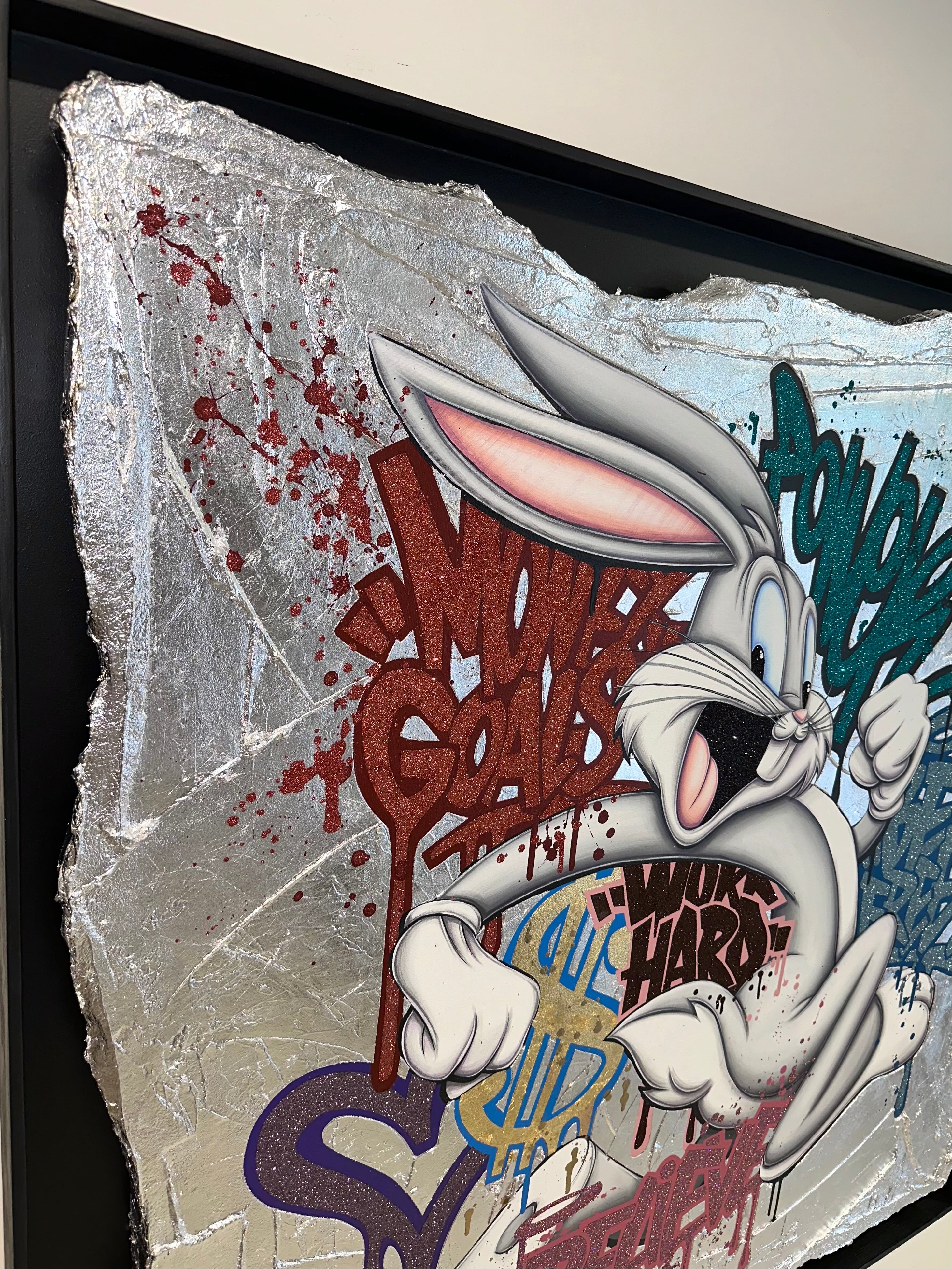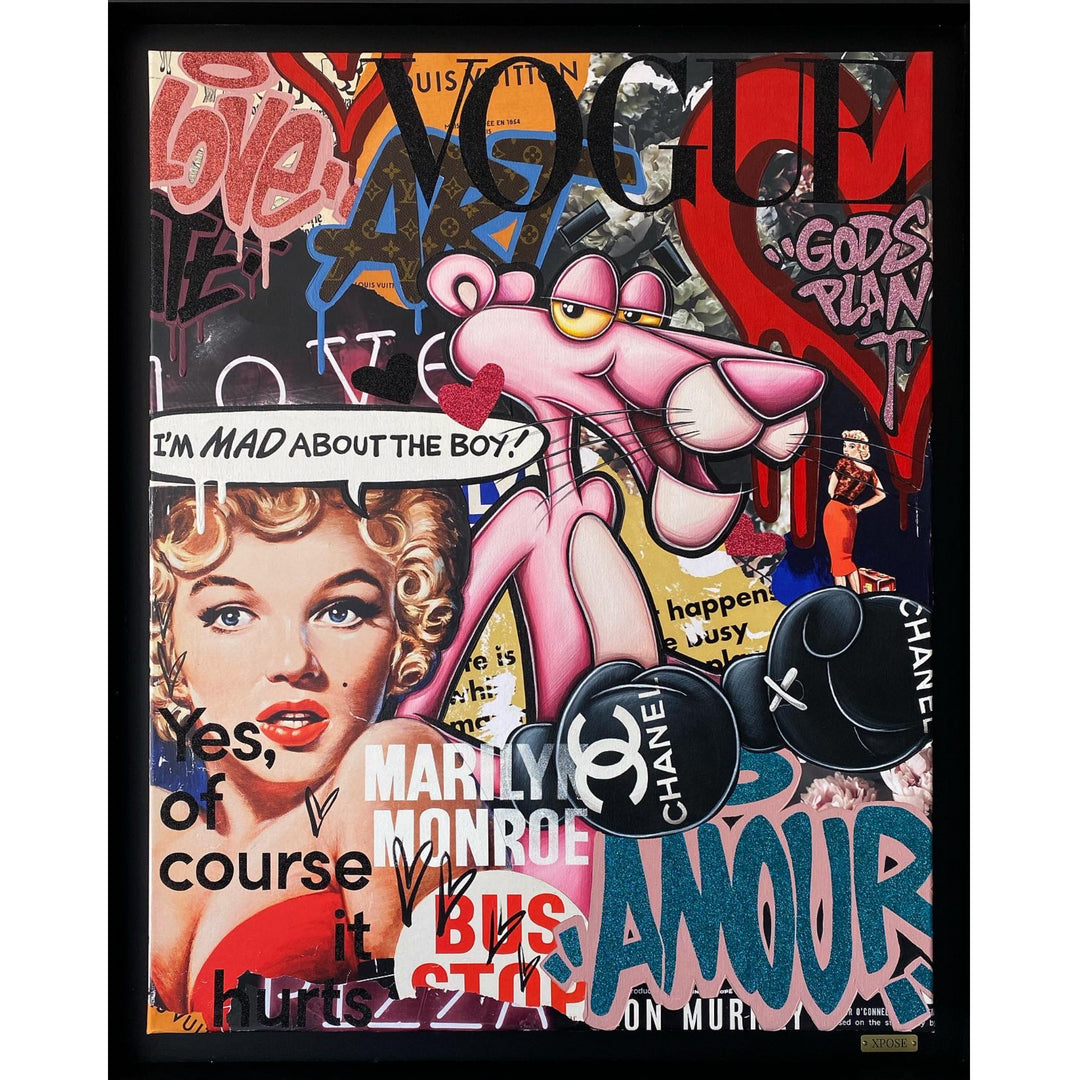 A common thread running through his paintings are the subjects of money and love, often illustrated by popular cartoon characters.